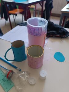 In una prima fase, divisi in piccoli gruppi, hanno osservato e analizzato diversi oggetti di uso quotidiano (plastica, cartone, metallo, tessuto), individuandone il materiale, alcune caratteristiche principali e la corretta modalità di smaltimento nella raccolta differenziata. Successivamente ogni gruppo ha progettato e realizzato un semplice oggetto utile (portapenne, maracas…) utilizzando materiali di recupero. Hanno compilato una breve scheda di progetto e realizzato anche un disegno dell’idea. L’attività ha favorito collaborazione, creatività e riflessione sull’importanza del riuso e della sostenibilità ambientale.
